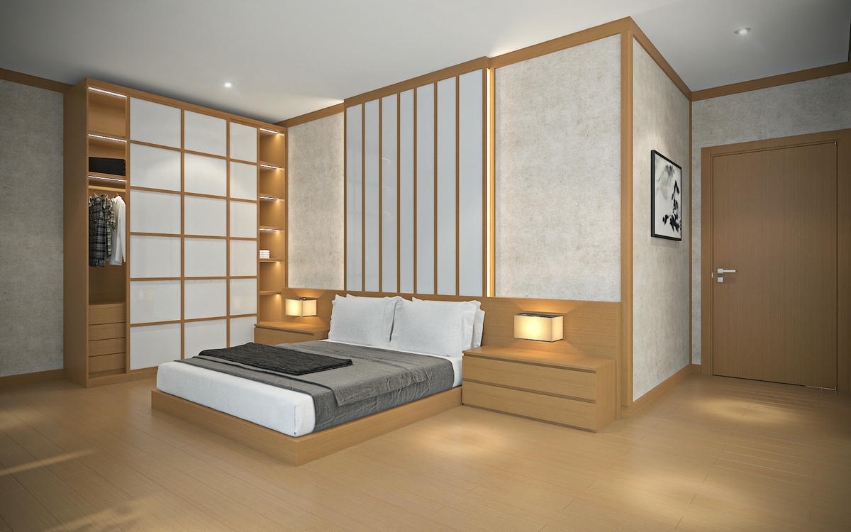 Trong thi công, xu hướng này ưu tiên sử dụng các vật liệu tự nhiên, tông màu trung tính sáng nhẹ như trắng, be, xám nhạt nhằm làm tăng cảm giác rộng rãi, thoáng đãng. Đồ nội thất trong phòng ngủ tối giản có thiết kế vững chắc, ít chi tiết trang trí nhưng vẫn mang lại vẻ đẹp độc đáo, tinh tế.