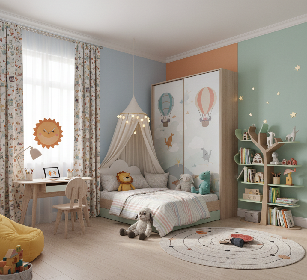 Thiết kế phòng ngủ trẻ em cần chú trọng đến sự an toàn, màu sắc tươi sáng và các yếu tố phát triển trí não, thể chất của bé yêu. Chính vì thế, sự thi công nội thất phù hợp với độ tuổi và sở thích của trẻ sẽ giúp các bé phát triển toàn diện và vui vẻ mỗi ngày.
