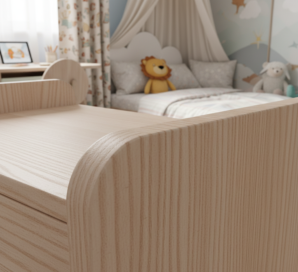 Màu sắc chủ đạo thường là các gam tươi sáng như vàng, hồng, xanh dương, hoặc các phối màu hoạt hình, dễ thương phù hợp với sở thích của trẻ. Vật liệu nội thất luôn phải đảm bảo tính an toàn, không chứa độc tố, bền bỉ, dễ vệ sinh.